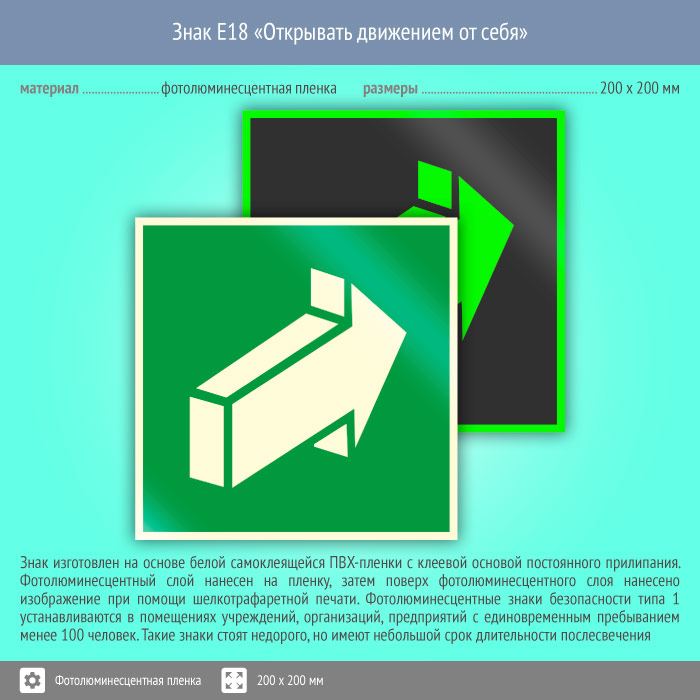 Знак E18 «Открывать движением от себя» (фотолюминесцентная пленка, 200х200 мм) в Москве купить