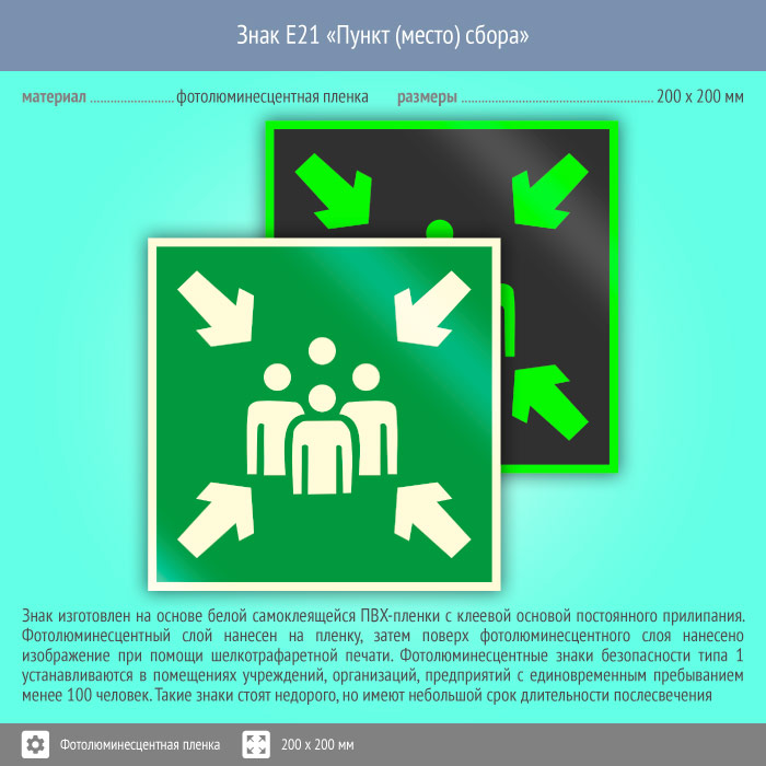 Знак E21 «Пункт (место) сбора» (фотолюминесцентная пленка, 200х200 мм) в Москве купить