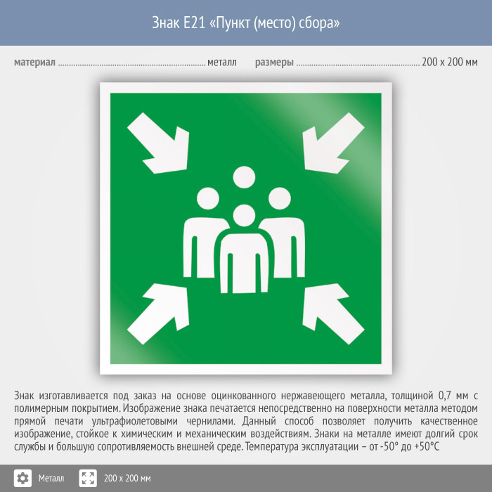 Знак E21 «Пункт (место) сбора» (металл, 200х200 мм) в Москве купить