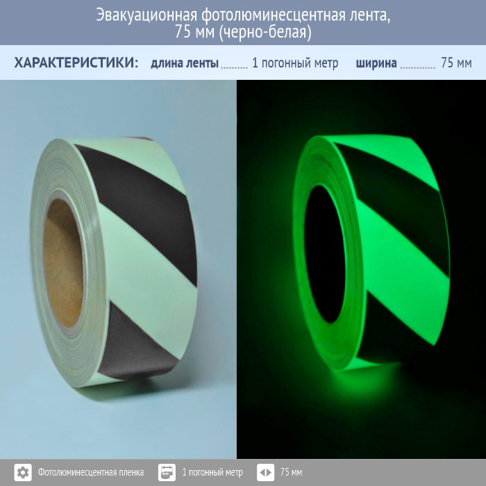 Эвакуационная фотолюминесцентная лента, 75 мм (черно-белая) в Москве купить