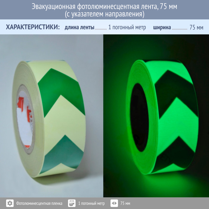 Эвакуационная фотолюминесцентная лента, 75 мм (с указателем направления) в Москве купить