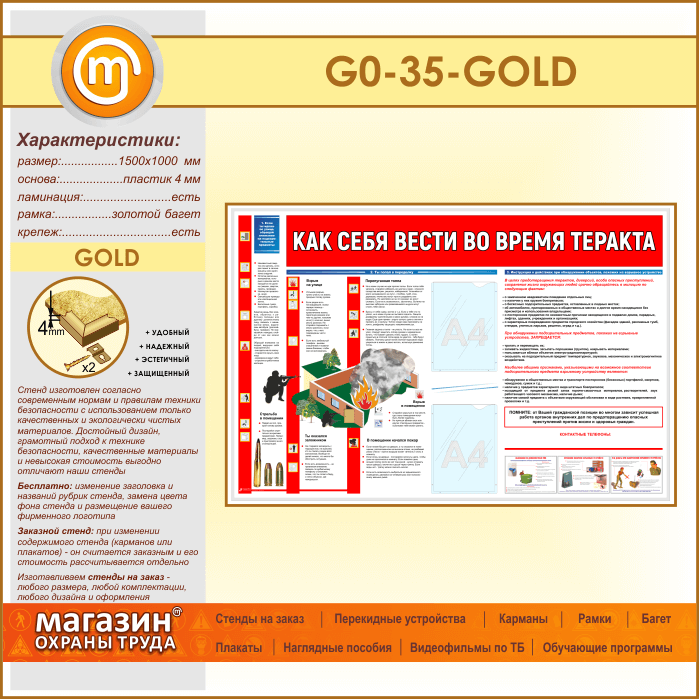 Стенд «Как себя вести во время теракта» c 2 карманами (GO-35-GOLD) в Москве купить
