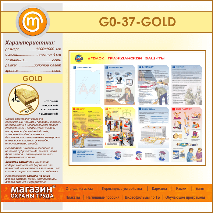 Стенд «Уголок гражданской защиты» с карманом (GO-37-GOLD) в Москве купить