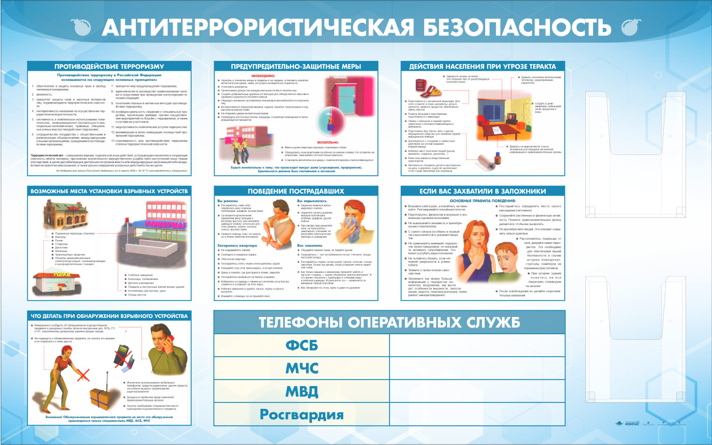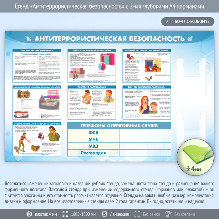 Стенд «Антитеррористическая безопасность» с 2-мя глубокими А4 карманами (GO-43.1-ECONOMY2) в Москве купить