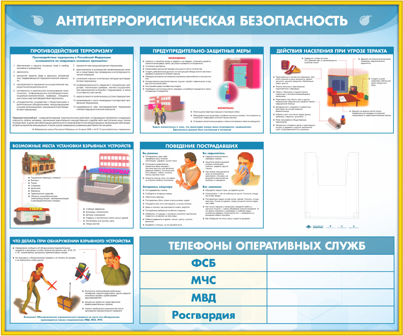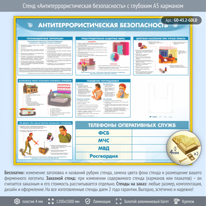 Стенд «Антитеррористическая безопасность» с глубоким А5 карманом (GO-43.2-GOLD) в Москве купить