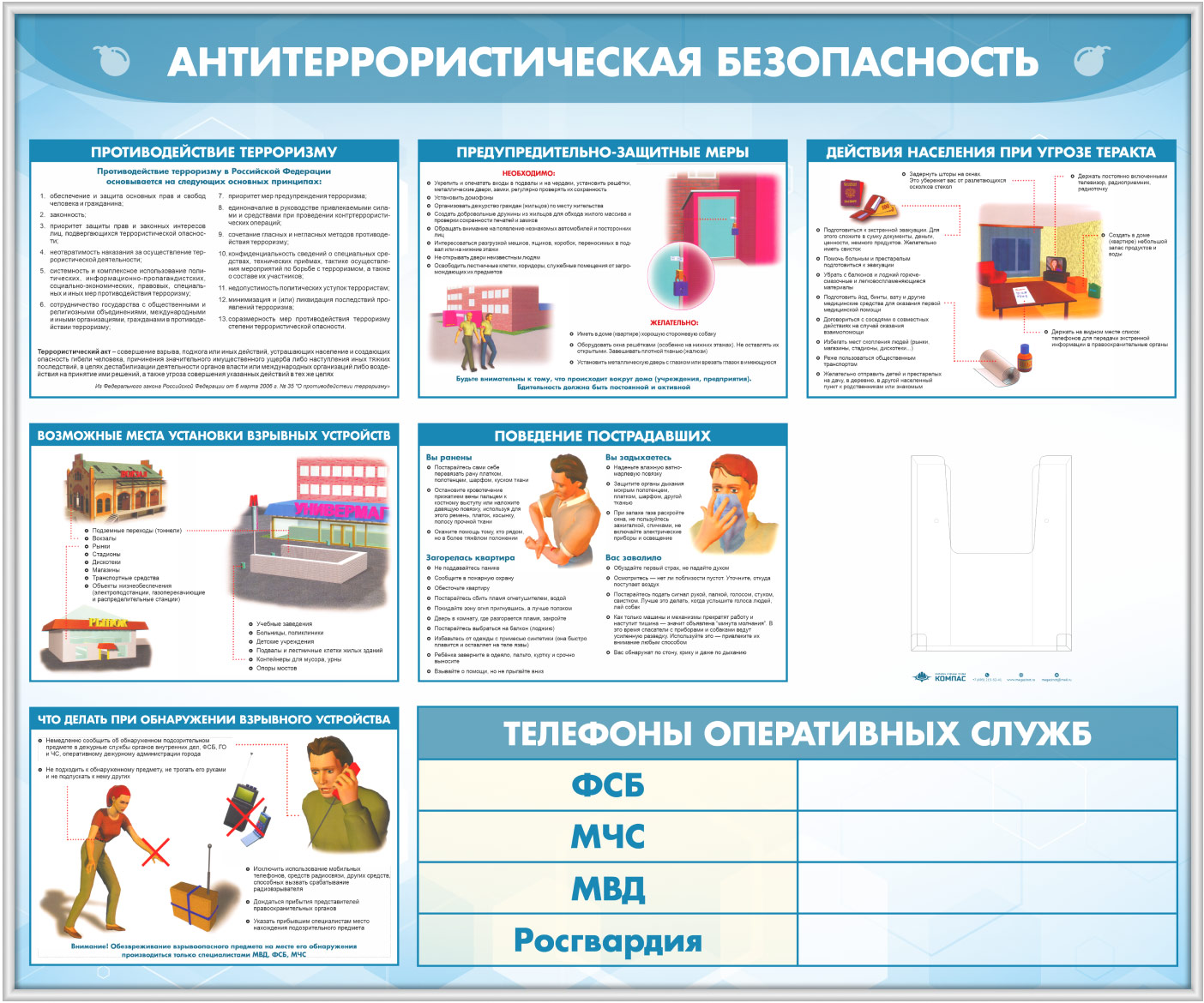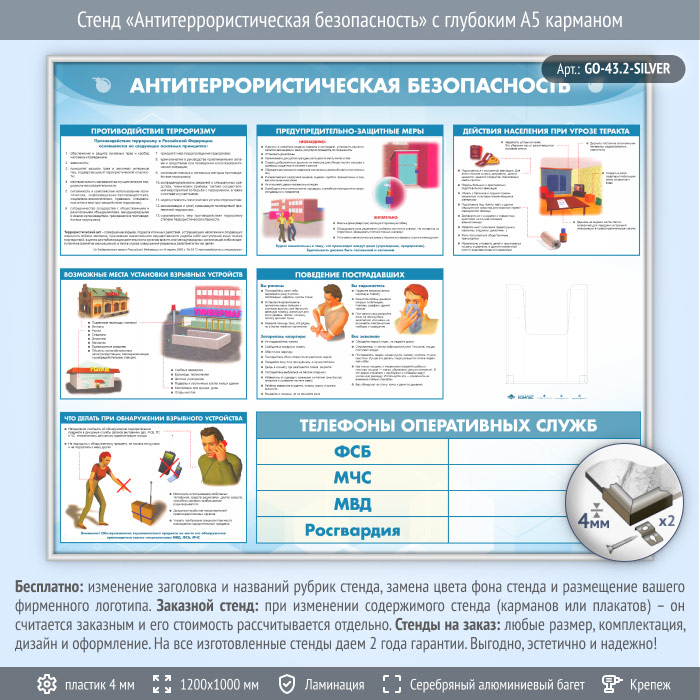 Стенд «Антитеррористическая безопасность» с глубоким А5 карманом (GO-43.2-SILVER) в Москве купить