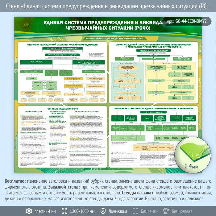 Стенд «Единая система предупреждения и ликвидации чрезвычайных ситуаций (РСЧС)» (GO-44-ECONOMY2) в Москве купить