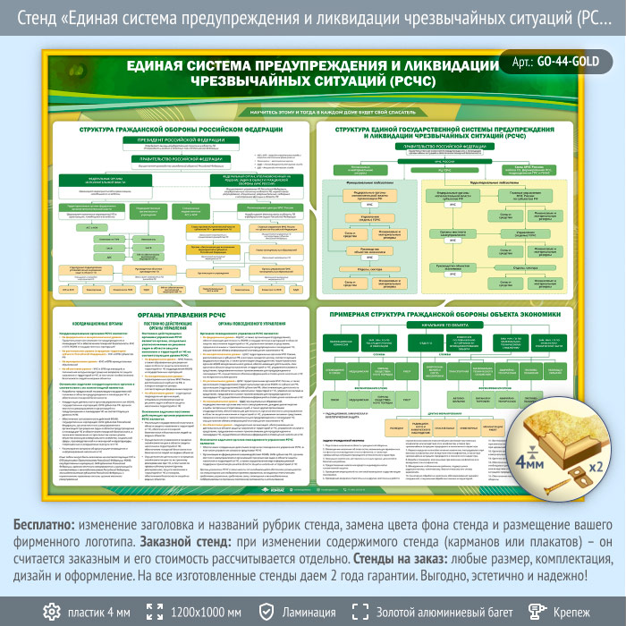Стенд «Единая система предупреждения и ликвидации чрезвычайных ситуаций (РСЧС)» (GO-44-GOLD) в Москве купить
