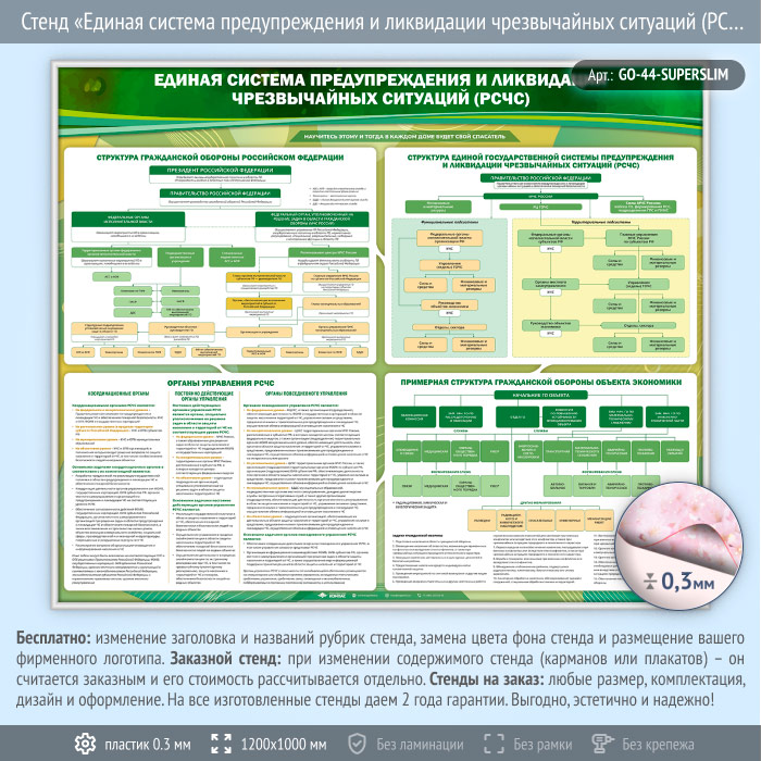 Стенд «Единая система предупреждения и ликвидации чрезвычайных ситуаций (РСЧС)» (GO-44-SUPERSLIM) в Москве купить