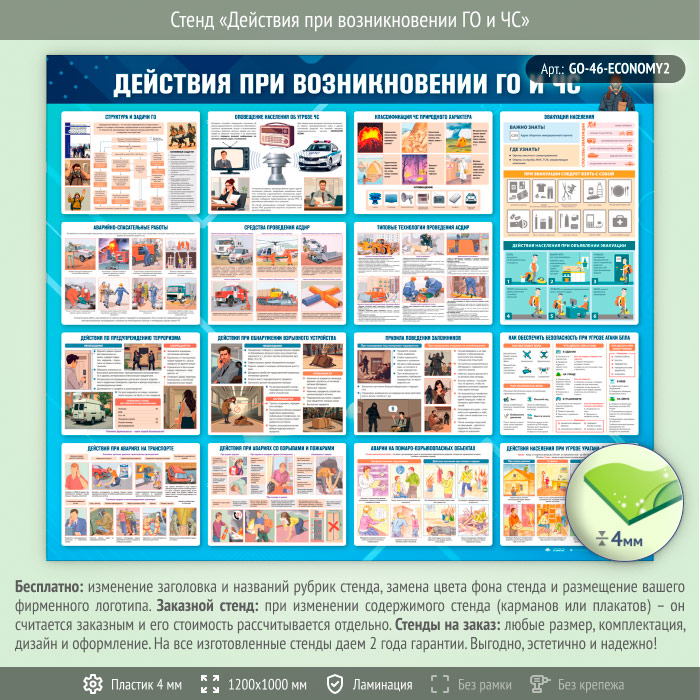 Стенд «Действия при возникновении ГО и ЧС» (GO-46-ECONOMY2) в Москве купить