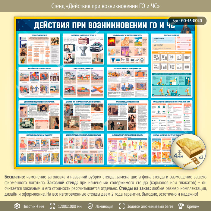 Стенд «Действия при возникновении ГО и ЧС» (GO-46-GOLD) в Москве купить