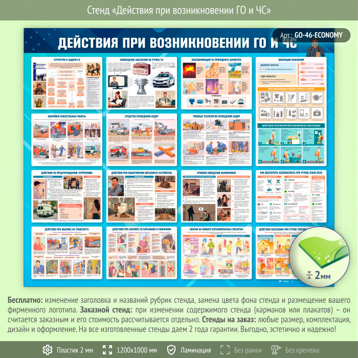 Стенд «Действия при возникновении ГО и ЧС» (GO-46-ECONOMY) в Москве купить