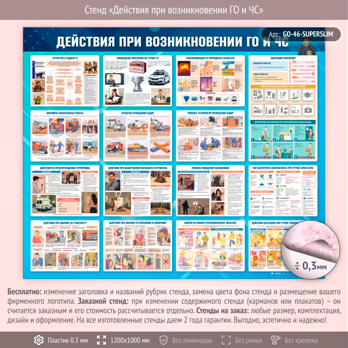 Стенд «Действия при возникновении ГО и ЧС» (GO-46-SUPERSLIM) в Москве купить