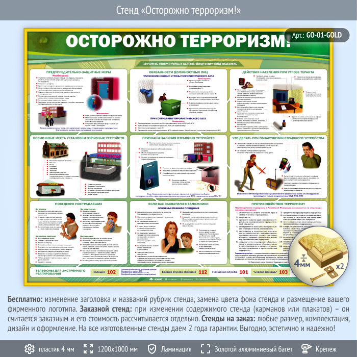 Стенд «Осторожно терроризм!» (GO-01-GOLD) в Москве купить