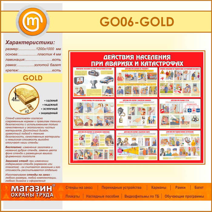 Стенд «Действия населения при авариях и катастрофах» (GO-06-GOLD) в Москве купить