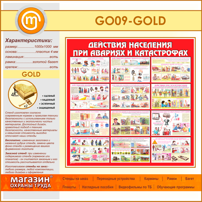 Стенд «Действия населения при авариях и катастрофах» (GO-09-GOLD) в Москве купить