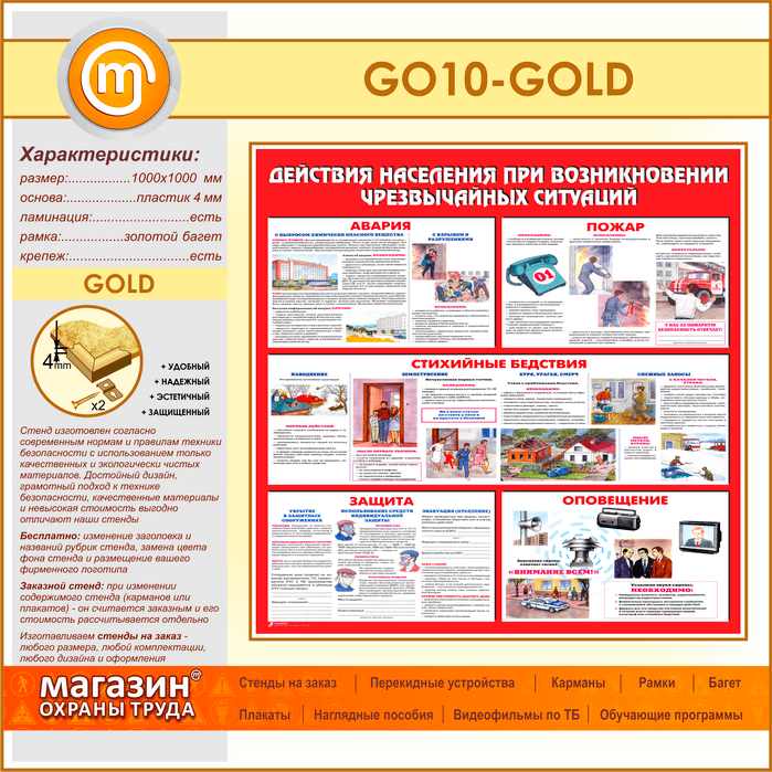 Стенд «Действия населения при возникновении чрезвычайных ситуаций» (GO-10-GOLD) в Москве купить