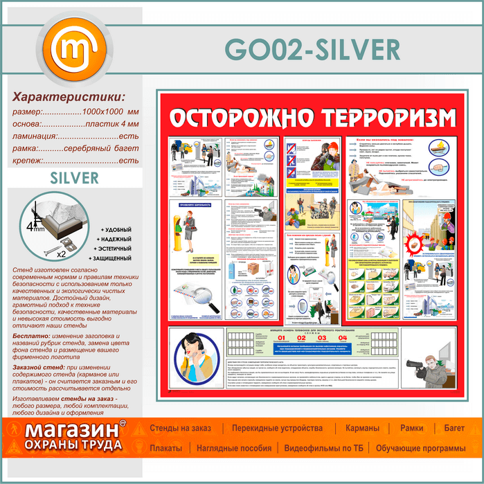 Стенд «Осторожно терроризм!» (GO-02-SILVER) в Москве купить