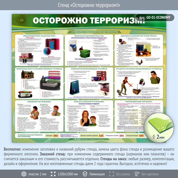 Стенд «Осторожно терроризм!» (GO-01-ECONOMY) в Москве купить
