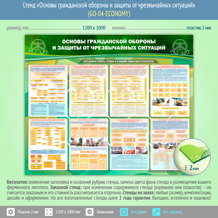 Стенд «Основы гражданской обороны и защиты от чрезвычайных ситуаций» (GO-04-ECONOMY) в Москве купить