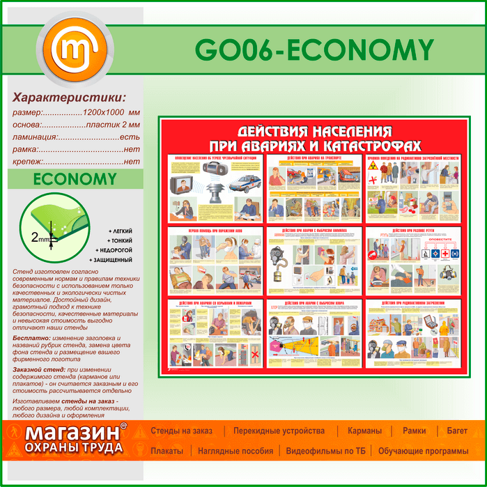 Стенд «Действия населения при авариях и катастрофах» (GO-06-ECONOMY) в Москве купить
