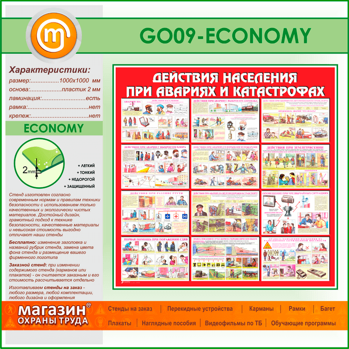 Стенд «Действия населения при авариях и катастрофах» (GO-09-ECONOMY) в Москве купить