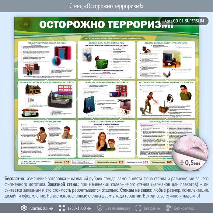 Стенд «Осторожно терроризм!» (GO-01-SUPERSLIM) в Москве купить