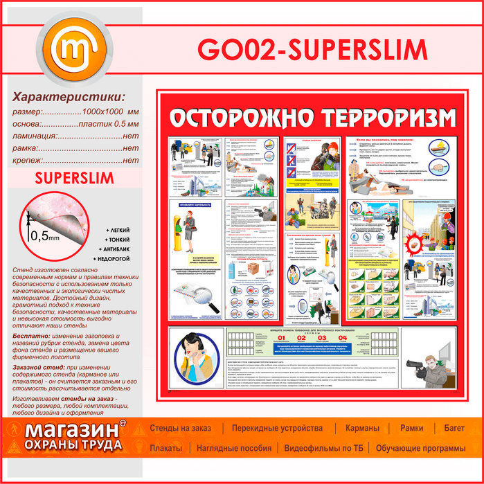 Стенд «Осторожно терроризм!» (GO-02-SUPERSLIM) в Москве купить