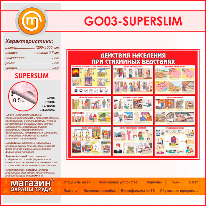 Стенд «Действия населения при стихийных бедствиях» (GO-03-SUPERSLIM) в Москве купить