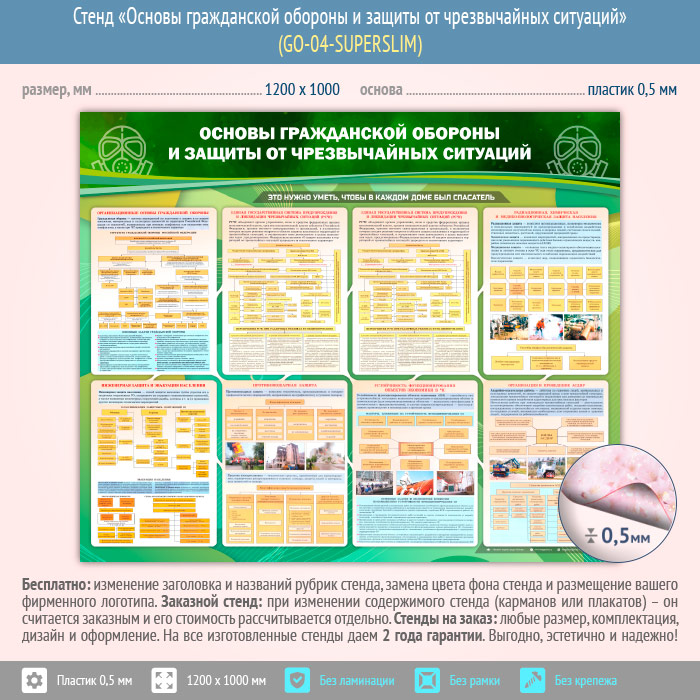 Стенд «Основы гражданской обороны и защиты от чрезвычайных ситуаций» (GO-04-SUPERSLIM) в Москве купить