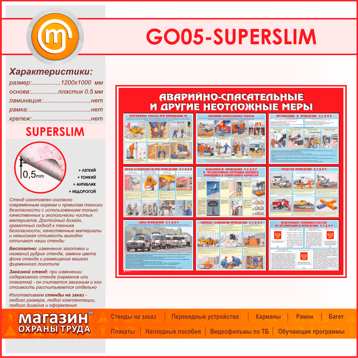 Стенд «Аварийно-спасательные и другие неотложные меры» (GO-05-SUPERSLIM) в Москве купить