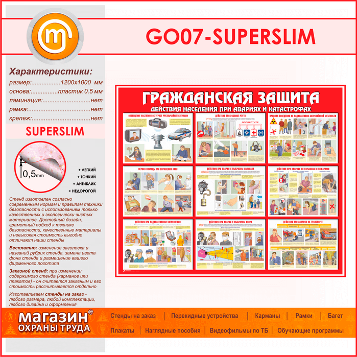 Стенд «Гражданская защита» (GO-07-SUPERSLIM) в Москве купить