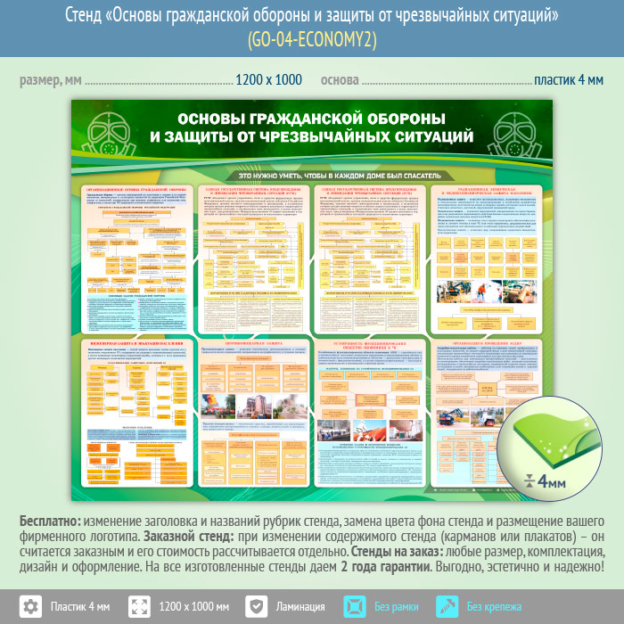 Стенд «Основы гражданской обороны и защиты от чрезвычайных ситуаций» (GO-04-ECONOMY2) в Москве купить