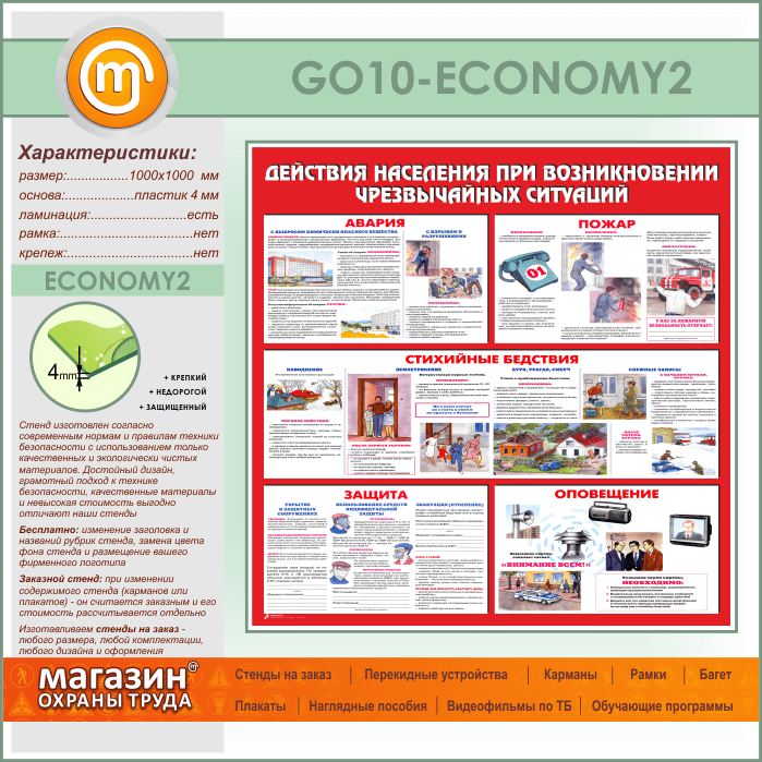 Стенд «Действия населения при возникновении чрезвычайных ситуаций» (GO-10-ECONOMY2) в Москве купить