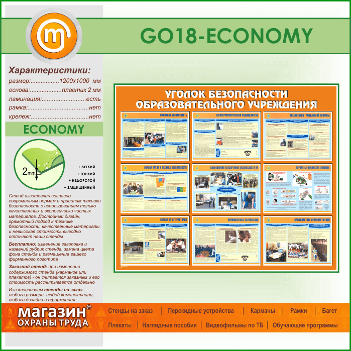 Стенд «Уголок безопасности образовательного учреждения» (GO-18-ECONOMY) в Москве купить