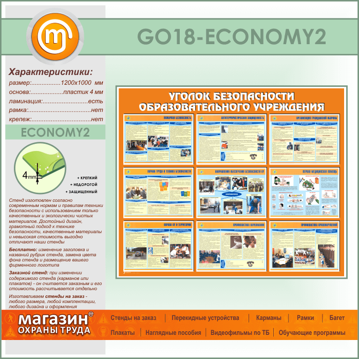 Стенд «Уголок безопасности образовательного учреждения» (GO-18-ECONOMY2) в Москве купить