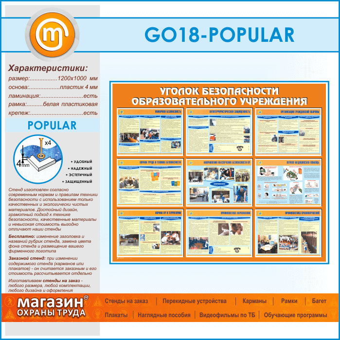 Стенд «Уголок безопасности образовательного учреждения» (GO-18-POPULAR) в Москве купить