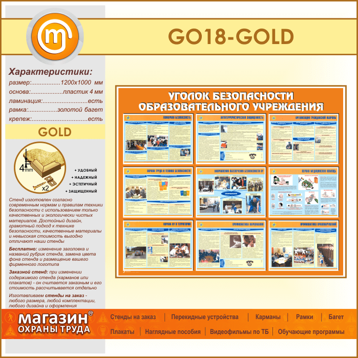 Стенд «Уголок безопасности образовательного учреждения» (GO-18-GOLD) в Москве купить