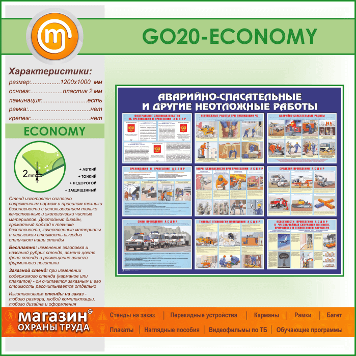 Стенд «Аварийно-спасательные и другие неотложные работы» (GO-20-ECONOMY) в Москве купить