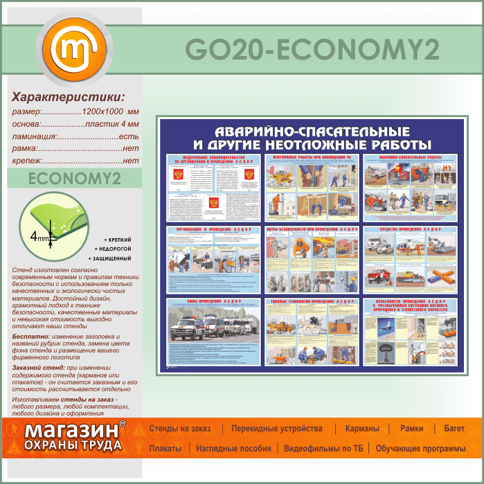 Стенд «Аварийно-спасательные и другие неотложные работы» (GO-20-ECONOMY2) в Москве купить