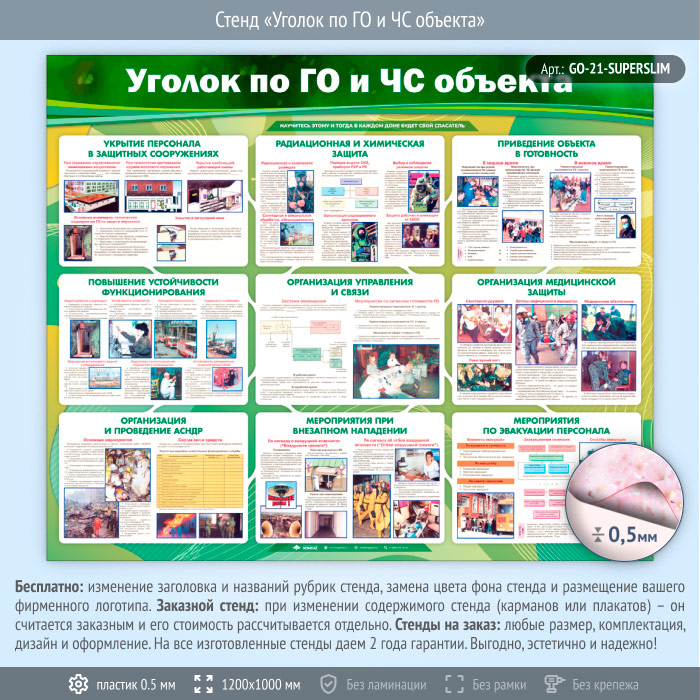 Стенд «Уголок по ГО и ЧС объекта» (GO-21-SUPERSLIM) в Москве купить