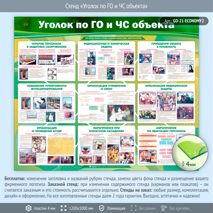 Стенд «Уголок по ГО и ЧС объекта» (GO-21-ECONOMY2) в Москве купить