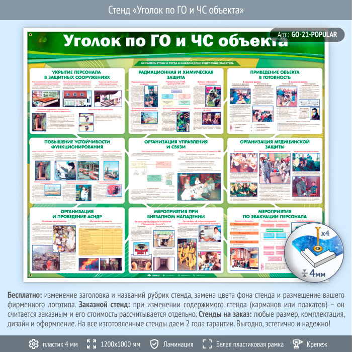 Стенд «Уголок по ГО и ЧС объекта» (GO-21-POPULAR) в Москве купить