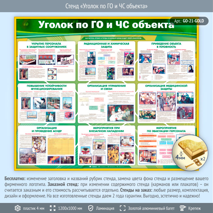 Стенд «Уголок по ГО и ЧС объекта» (GO-21-GOLD) в Москве купить