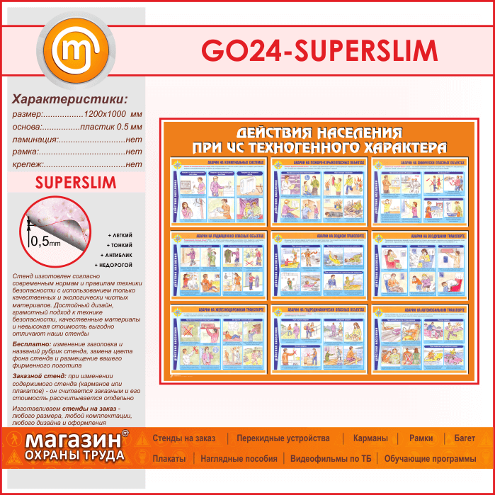 Стенд «Действия населения при ЧС техногенного характера» (GO-24-SUPERSLIM) в Москве купить