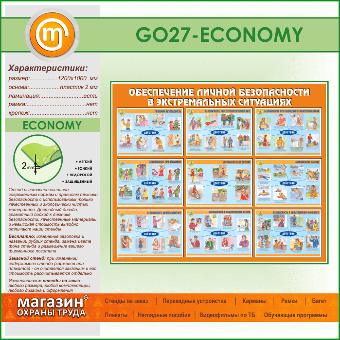 Стенд «Обеспечение личной безопасности в экстремальных ситуациях» (GO-27-ECONOMY) в Москве купить