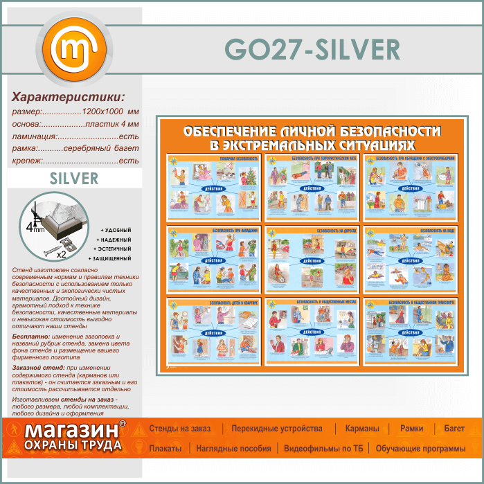Стенд «Обеспечение личной безопасности в экстремальных ситуациях» (GO-27-SILVER) в Москве купить