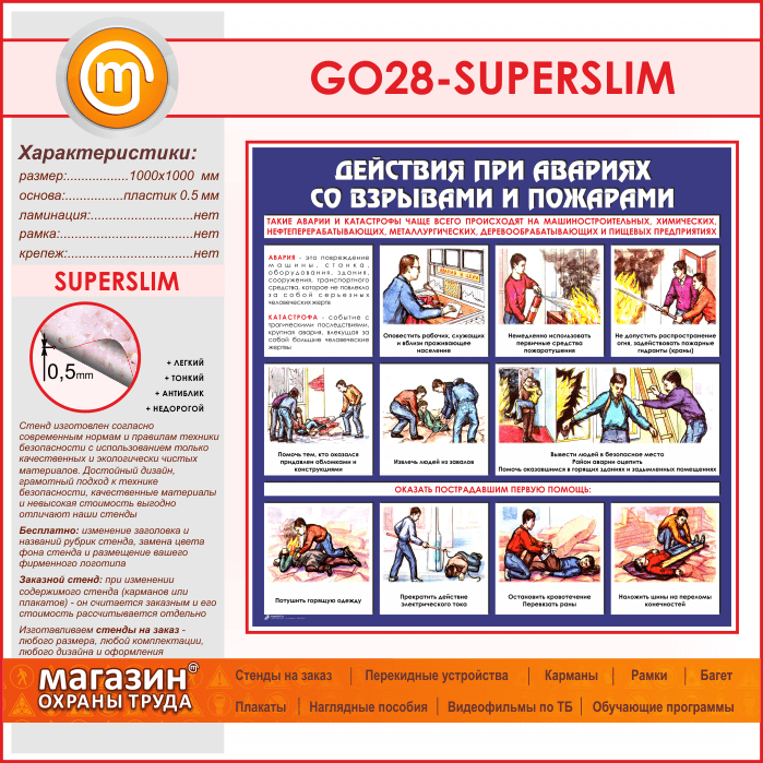 Стенд «Действия при авариях со взрывами и пожарами» (GO-28-SUPERSLIM) в Москве купить