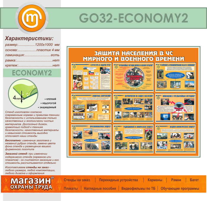 Стенд «Защита населения в ЧС мирного и военного времени» (GO-32-ECONOMY2) в Москве купить