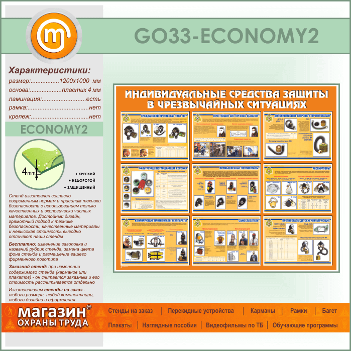 Стенд «Индивидуальные средства защиты в чрезвычайных ситуациях» (GO-33-ECONOMY2) в Москве купить